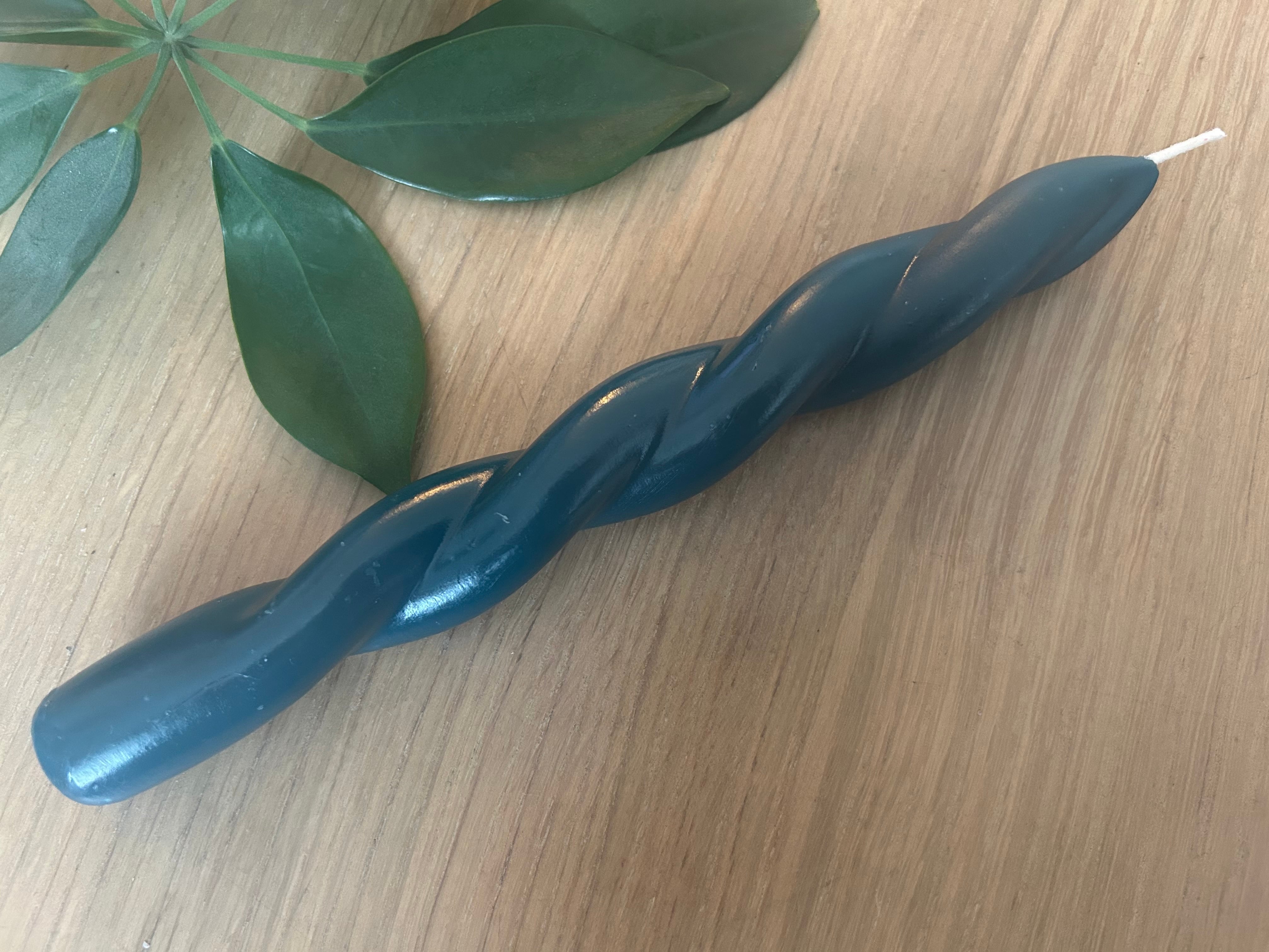 Dette lys har med en bomuldsklud får pålagt et tyndt lag vandbaseret lyslak, så lysets smukke farve fastholdes.