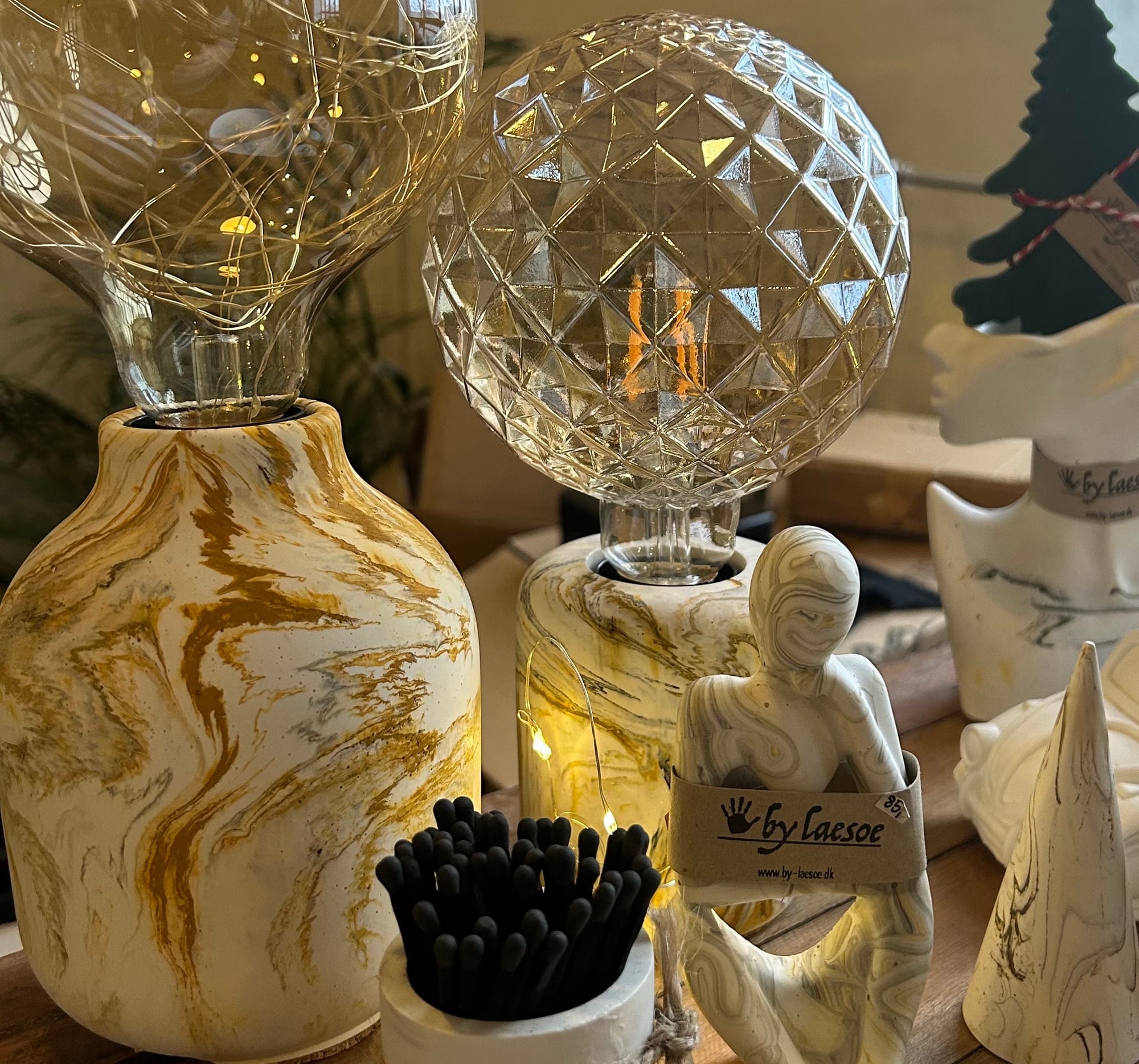 Brug lampen med en enkel, smuk pære eller invester i en af de mere dekorative. Der sælges utroligt mange smukke pærer på diverse hjemmesider i alle prisklasser. Vi har også altid et lille lager af forskellige pærer, som du kan købe til indkøbspris sammen med lampen - skriv hvis det har interesse, så ser vi, hvad vi har på lager.